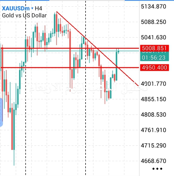استمرار التداول ضمن نطاق 4,850 – 5,100 دولار حتى صدور بيانات الجمعة.